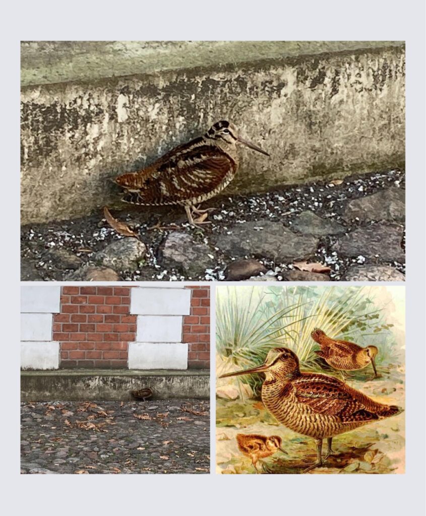 Sur la photo, une bécasse des bois trouvée dans le centre-ville. Sur le fond du mur, elle est quasiment invisible.